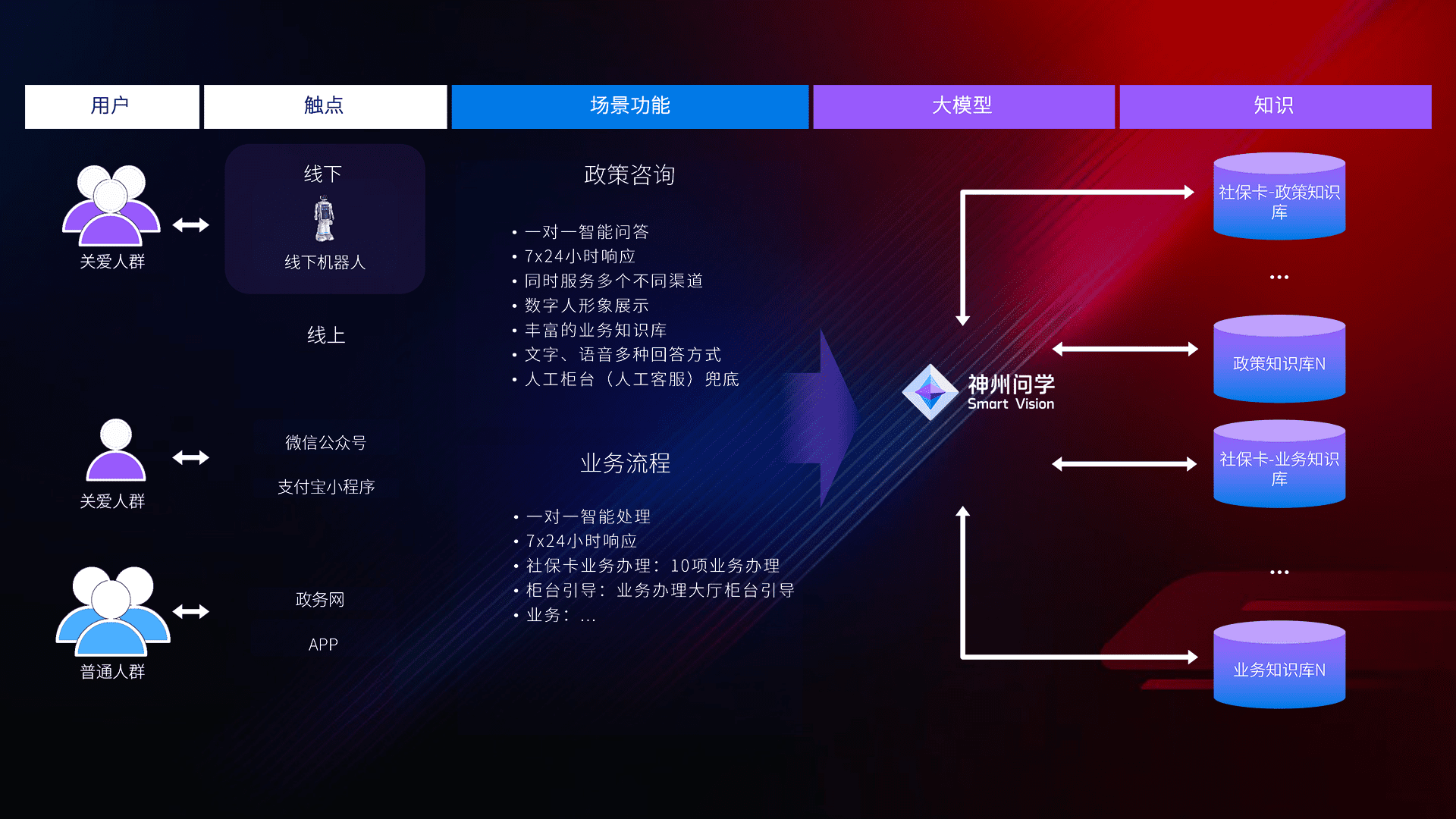 • 线上线下全覆盖:线上提供微信公众号、、、支付宝小程序、、、、政务网、、app多种渠道,,,与线下机器人形成完整服务体系。。