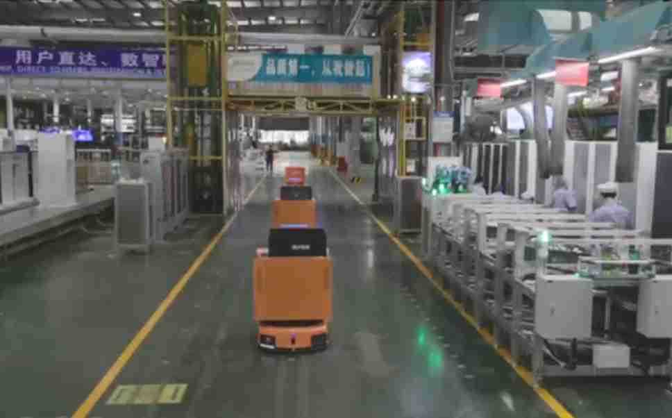 为车载冰箱物流配送打造的智能解决方案,,,包含产中物流通过潜伏举升AMR搬运至线边,,产后成品物流智能仓储,,,流程包含产中物流智能齐套入库,,线边安灯叫料AMR智能配送至线边,,,成品入库、、出库,,,,通过无人堆高车机器人,,,,智能仓储管理替代人工作业管理,,,实现更高存储、、更高效率、、更具柔性化的解决方案。。。。